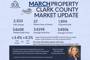 MARKET WATCH HEADER By Dulcie Crawford|2024-03-13T09:51:18-07:00March 13th, 2024| Share This Story, Choose Your Platform! FacebookXRedditLinkedInWhatsAppTumblrPinterestVkEmail Dulcie Crawford NV Lic #S.0042780 Signature Real Estate Group Buyers: 702.505.2775 Sellers: 702.505.2775 Office: 702.568.2530 Get Directions to My Office: 2200 Paseo Verde Pkwy Suite 300A, Henderson, NV 89052 FREE Real Estate Market Report Get in Touch