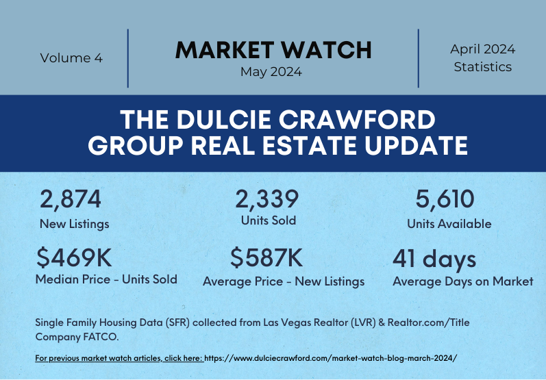 MARKET WATCH MAY By Dulcie Crawford|2024-05-21T09:15:13-07:00May 21st, 2024| Share This Story, Choose Your Platform! FacebookXRedditLinkedInWhatsAppTumblrPinterestVkEmail Dulcie Crawford NV Lic #S.0042780 Signature Real Estate Group Buyers: 702.505.2775 Sellers: 702.505.2775 Office: 702.568.2530 Get Directions to My Office: 2200 Paseo Verde Pkwy Suite 300A, Henderson, NV 89052 FREE Real Estate Market Report Get in Touch