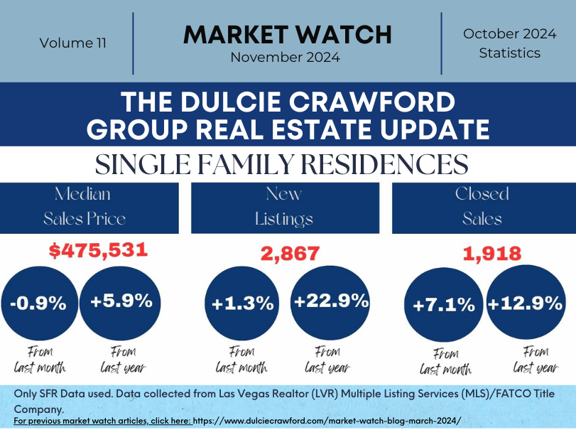 MARKET WATCH NOVEMBER By Dulcie Crawford|2024-11-14T04:57:33-08:00November 14th, 2024| Share This Story, Choose Your Platform! FacebookXRedditLinkedInWhatsAppTumblrPinterestVkEmail Dulcie Crawford NV Lic #S.0042780 Signature Real Estate Group Buyers: 702.505.2775 Sellers: 702.505.2775 Office: 702.568.2530 Get Directions to My Office: 2200 Paseo Verde Pkwy Suite 300A, Henderson, NV 89052 FREE Real Estate Market Report Get in Touch