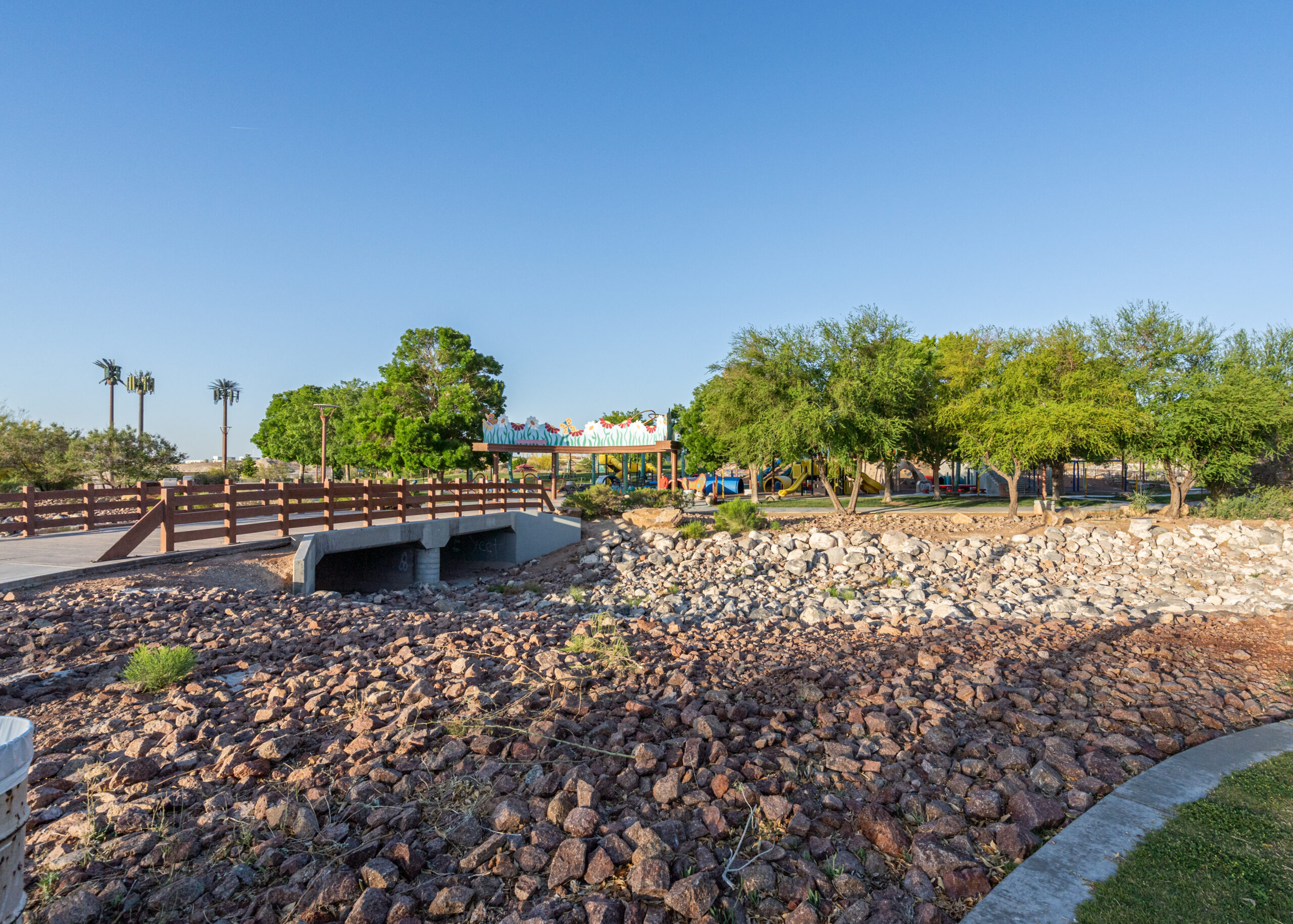 There’s even an amphitheatre with grass seating for more than 3,000 people. A popular place for birthdays and special events, this park is built around an historic inverted riverbed thought to be the last of a large network that used to cover the area.