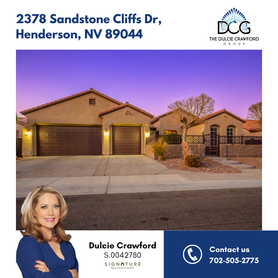 Listing Blogs Featured Photos (3) By Dulcie Crawford|2025-01-13T10:01:20-08:00January 13th, 2025| Share This Story, Choose Your Platform! FacebookXRedditLinkedInWhatsAppTumblrPinterestVkEmail Dulcie Crawford NV Lic #S.0042780 Signature Real Estate Group Buyers: 702.505.2775 Sellers: 702.505.2775 Office: 702.568.2530 Get Directions to My Office: 2200 Paseo Verde Pkwy Suite 300A, Henderson, NV 89052 FREE Real Estate Market Report Get in Touch